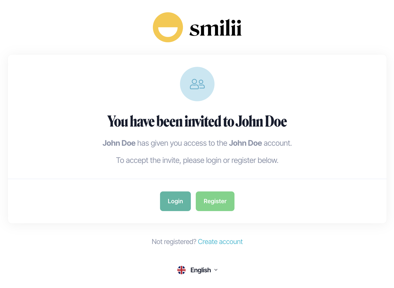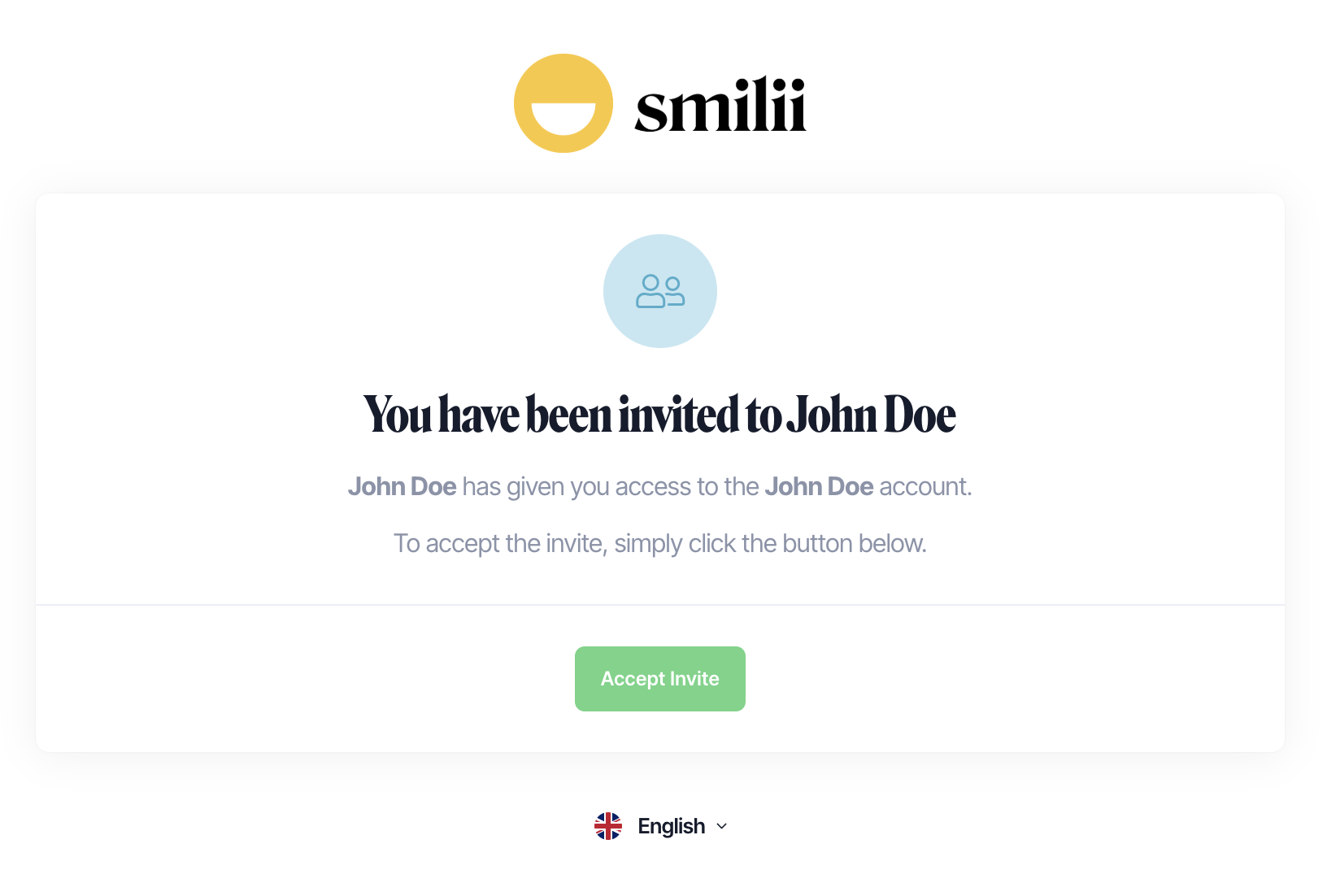 - You've received an email from Smilii with the subject, "[Name] has invited you to their Smilii account"